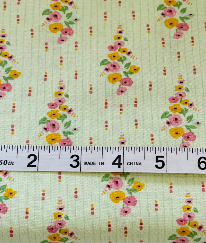 Fabric - Floral - (599) Pretty Green Self Stripe with Flowers is backordered and will ship as soon as it is back in stock.