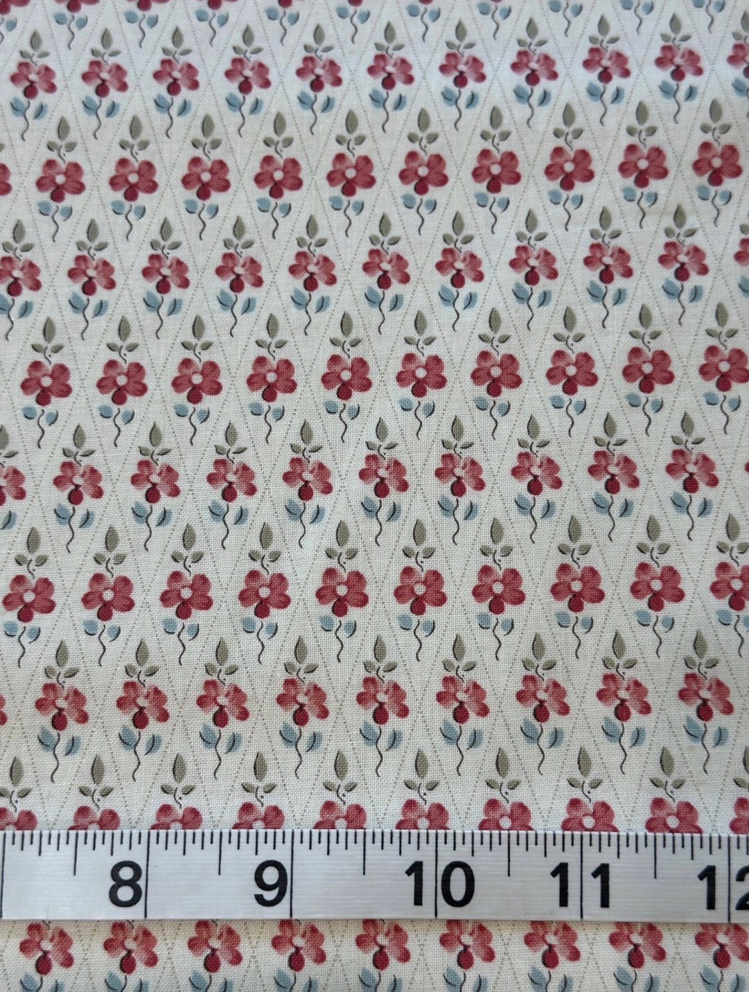 Fabric - Floral - (3690) French General Red, Green & Blue Floral with Diamond Crosshatch is backordered and will ship as soon as it is back in stock.