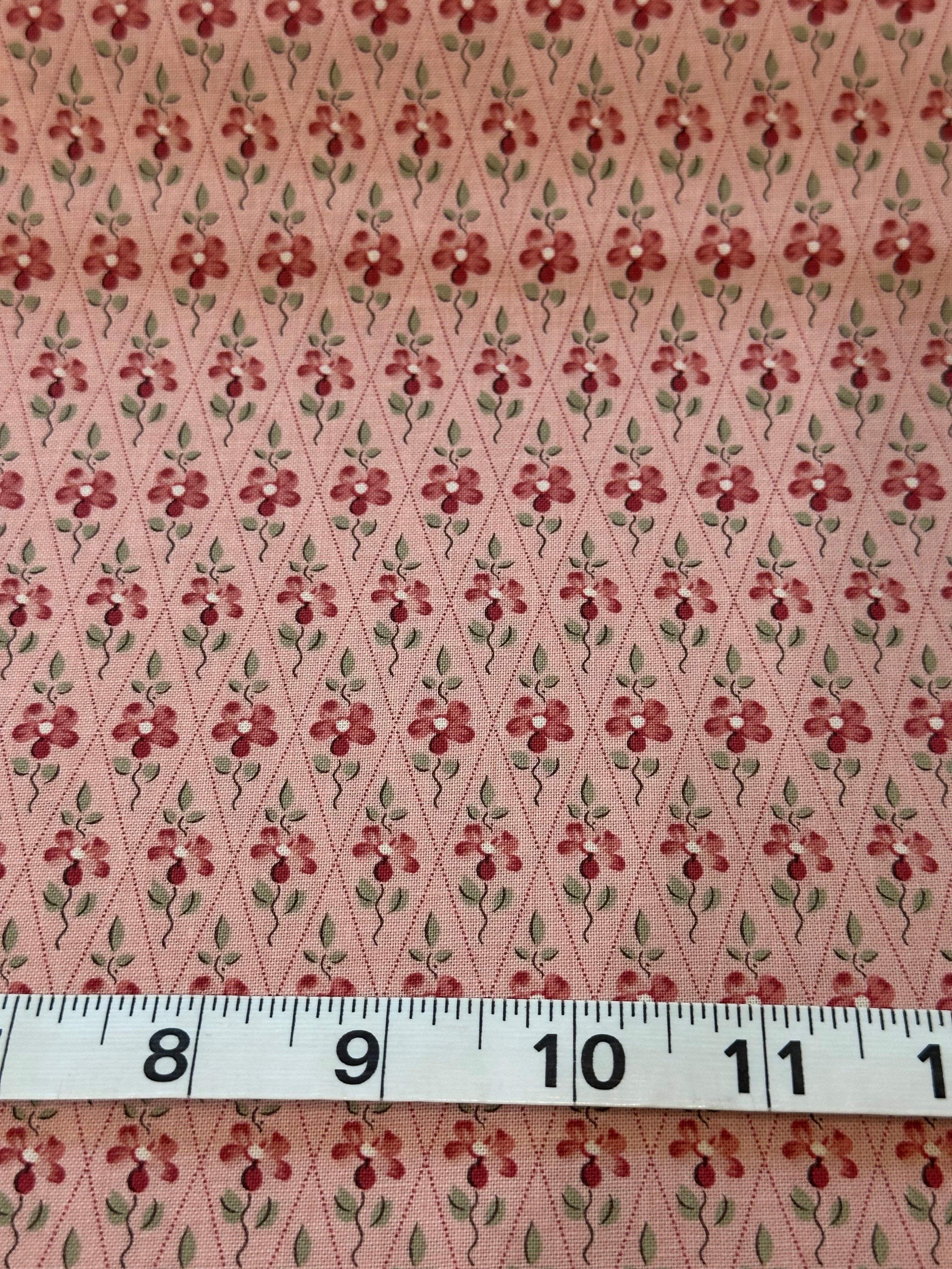Fabric - Floral - (3695) French General Red & Green Floral with Diamond Crosshatch on Pink is backordered and will ship as soon as it is back in stock.
